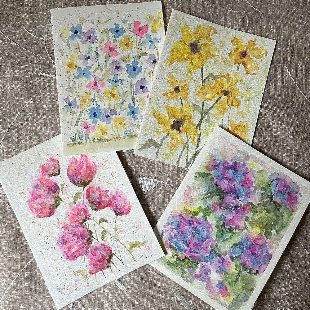 Join Bette from Easel on Down for a special floral watercolor card class. You will learn how to make a few different flower shapes, and each guest will take home 4 different cards. These cards can then be printed to send to your friends! This class will book up quickly, so make sure you sign up early. Bring a friend and your favorite wine for a relaxing night. All materials will be provided and we will supply snacks and soft drinks. All participants will also receive a coupon for 25% off one item of your choice in our shops.